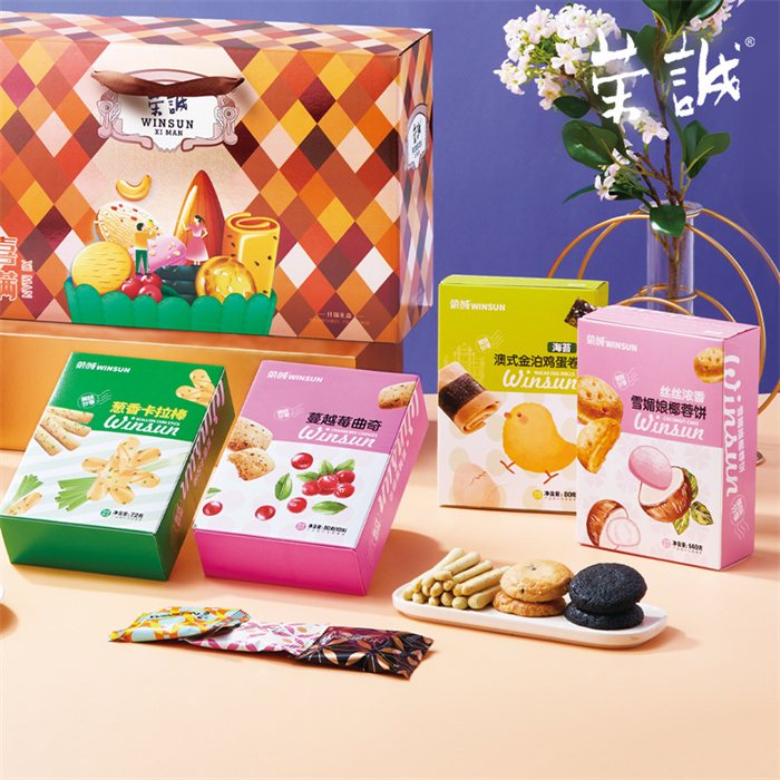 80g香焙杏仁酥x1,80g香焙黑芝麻酥x1,80g蔓越莓曲奇x1,72g蔥香卡拉棒x1,80g澳式金泊雞蛋卷(海苔)x1,140g絲絲濃香雪媚娘椰蓉餅x1