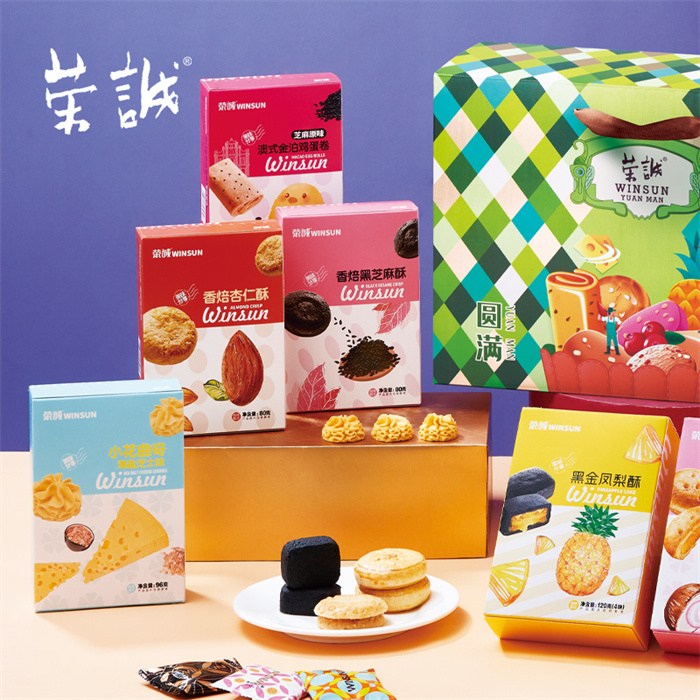 80g香焙杏仁酥x1,80g香焙黑芝麻酥x1,80g蔓越莓曲奇x1,80g椰蓉奶酥x1,80g澳式金泊雞蛋卷(芝麻原味)x1,140g絲絲濃香雪媚娘椰蓉餅x1,96g小花曲奇(海鹽芝士味)x1,120g黑金鳳梨酥x1
